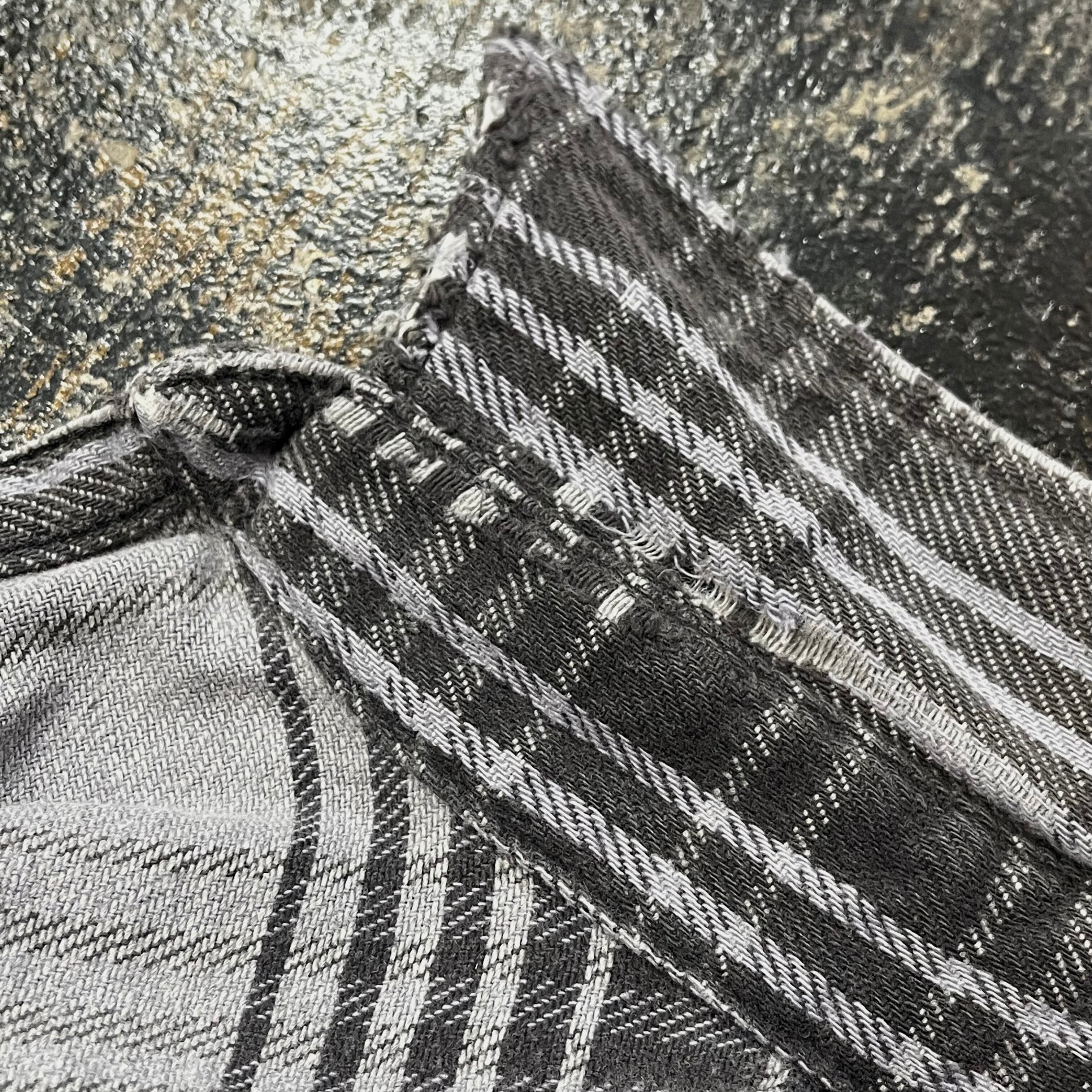 少し青が混ざったようなグレーに色褪せたブラックのチェック柄