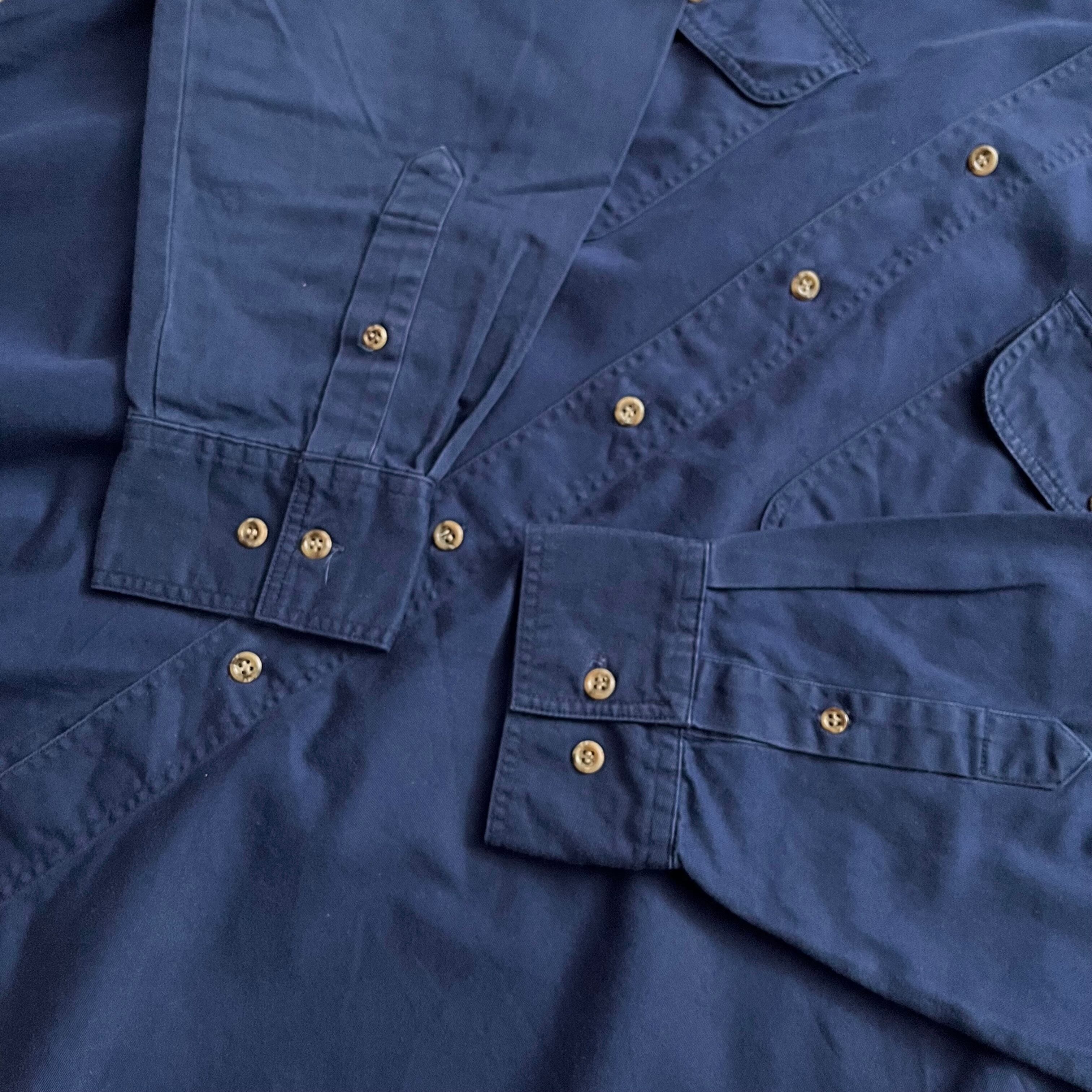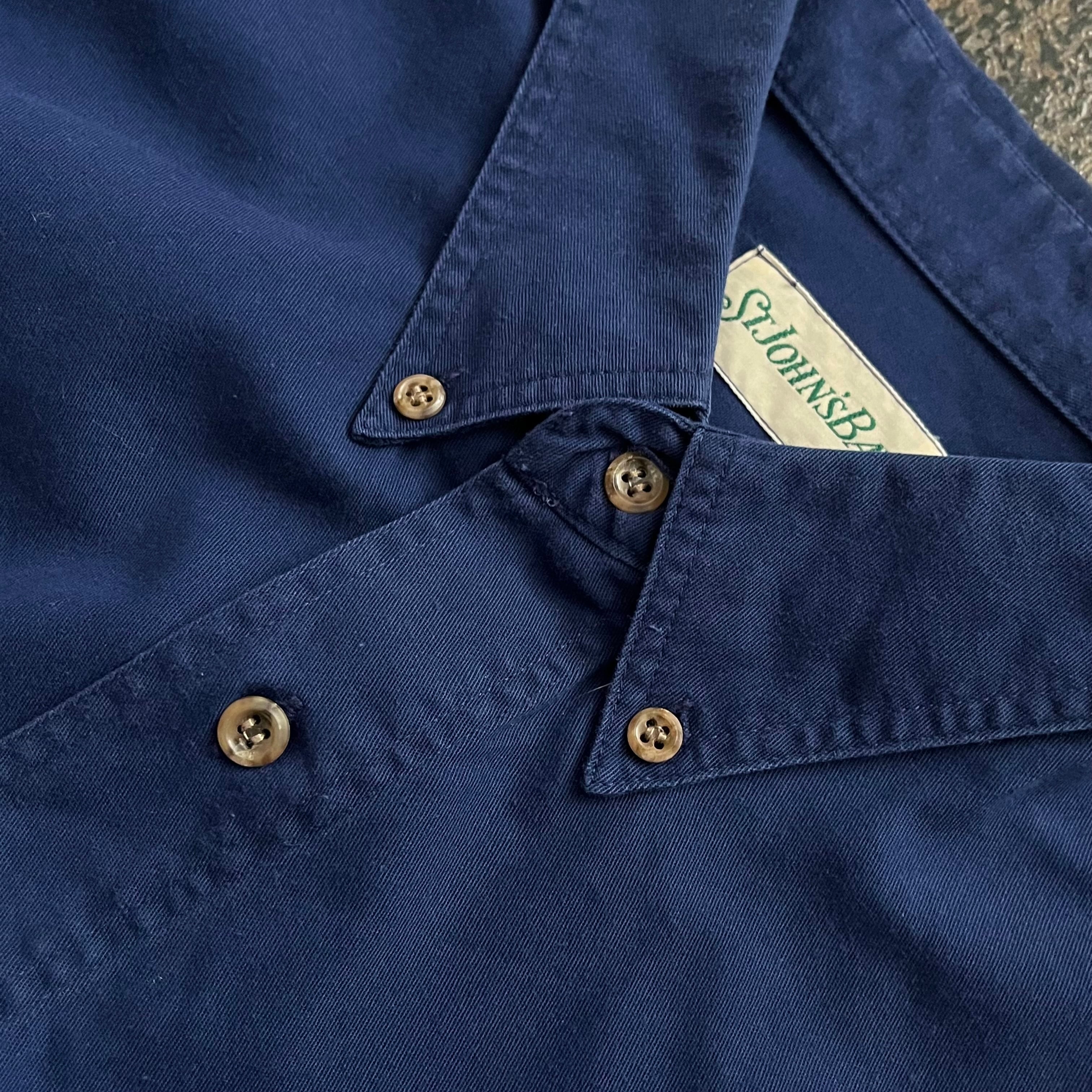 90s ST. JOHNS BAY COTTON SHIRT SizeL ネイビー